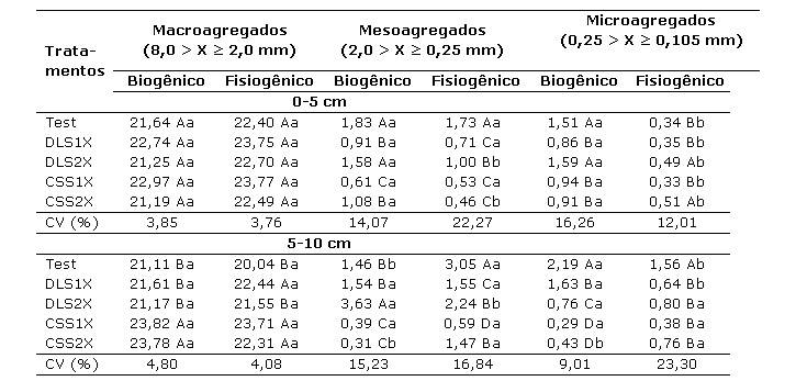 Aplicações sucessivas de dejetos suínos podem promover mudanças nos atributos físicos do solo, com ênfase nas vias de formação dos agregados solo. O objetivo deste trabalho foi separar e quantificar os agregados conforme sua via de formação e avaliar a estabilidade desses agregados em área com histórico de aplicações de dejeto líquido de suínos (DLS) e cama sobreposta de suínos (CSS), em sistema plantio direto (SPD). Após 10 anos do uso de dejetos suínos (DS) na sucessão aveia/milho sob SPD, coletaram-se amostras indeformadas de solo nas camadas de 0-5 e 5-10 cm, nos tratamentos sem DS (testemunha), com aplicação de DLS e CSS em doses equivalentes a uma e duas vezes a recomendação de N para o milho e a aveia (DLS1X, DLS2X, CSS1X e CSS2X, respectivamente). Os agregados foram separados conforme os seus padrões morfológicos e vias de formação em biogênicos e fisiogênicos. Em seguida, avaliaram-se o diâmetro médio ponderado (DMP) dos agregados e a distribuição dos agregados nas classes de diâmetro para macroagregados (8,00 > Ø ≥ 2,0mm), mesoagregados (2,0 > Ø ≥ 0,25mm) e microagregados (Ø < 0,25mm), em cada tipo de agregado. A adição de dejetos suínos aumentou a formação de agregados biogênicos. Na área testemunha prevalece a via de formação de agregados fisiogênicos. A aplicação de DLS não alterou o DMP e os macroagregados em relação à testemunha, enquanto a aplicação de CSS aumentou esses parâmetros quando comparada aos tratamentos DLS e Testemunha.