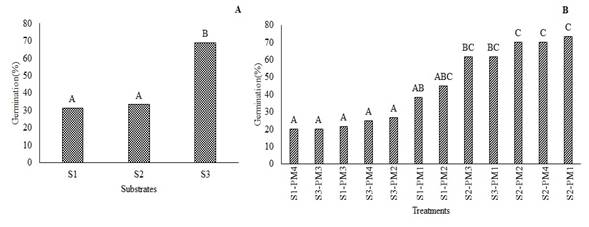 High Andean forests are strategic ecosystems with high diversity of native and endemic plants; however, these natural ecosystems are affected by agricultural expansion. Knowledge on the propagation of native plants is essential to restore these environments. This research aimed to evaluate germination in the following native species: Viburnum triphyllum Kunt. (Caprifoliaceae), Oreopanax floribundum Kunth, (Araliaceae), Weinmannia tomentosa L.f. (Cunoniaceae), and Tournefortia fuliginosa Benth. (Boraginaceae) in Botana experimental farm of Universidad de Nariño. This study was conducted between October (2016) and February (2017). For each species, an unrestricted randomized split-plot design was established. The main plot included the substrates (S), and the sub-plots included the different pre-germination treatments (PM) with three repetitions. The results showed statistically differences in germination percentage among pre-germination treatments for O. floribundum. The highest germination percentage (42%) for this species was achieved with seed imbibition for 48 hours at 22°C. Moreover, W. tomentosa showed statistical differences for S and PM, with a germination percentage of 74% with imbibition for 48 h at 22°C and sand substrate. T. fuliginosa did not show relevant differences; however, it had a germination percentage of 47%. V. triphyllum did not germinate; therefore, further evaluations of pre-germination treatments should be required.